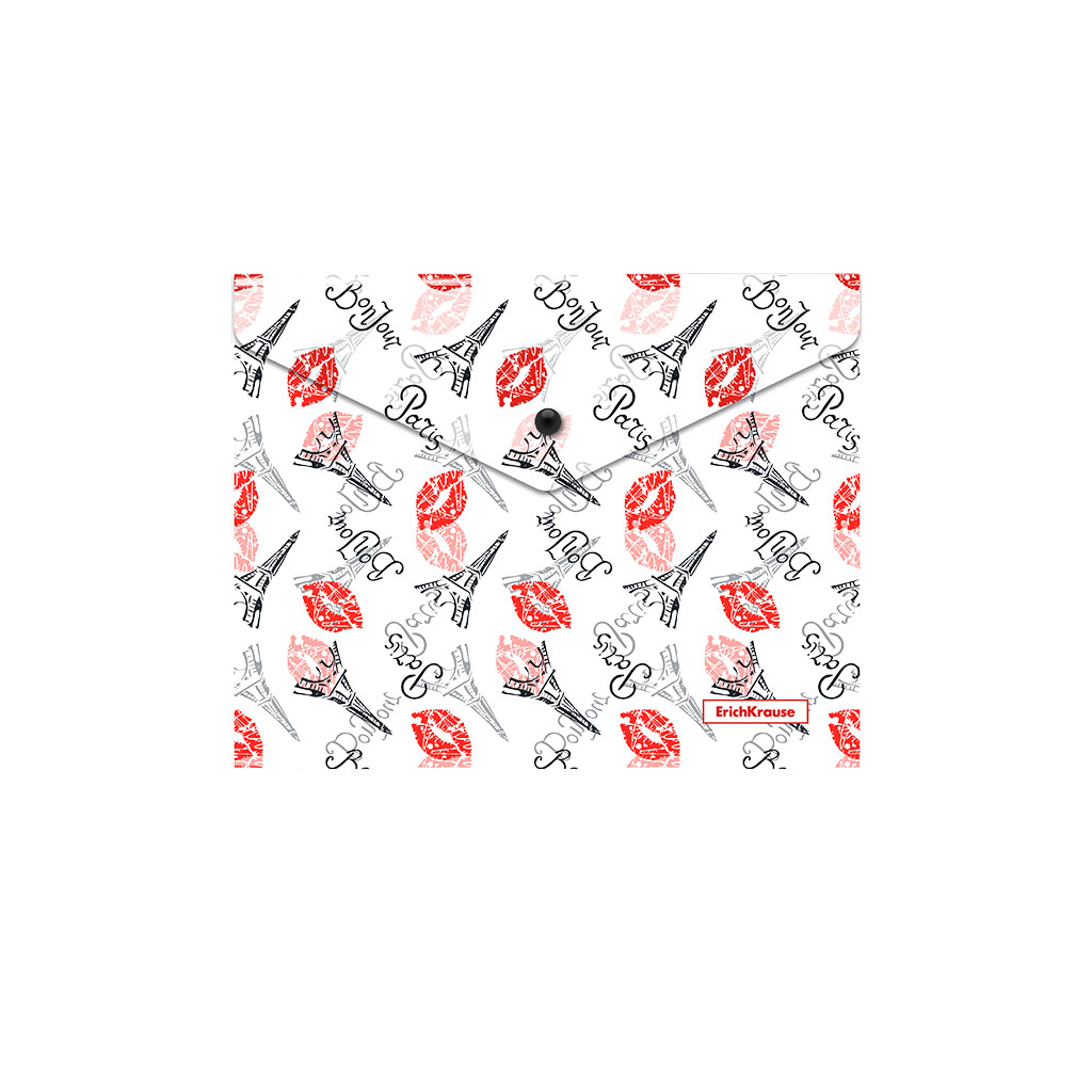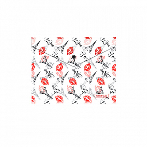 Папка-конверт на кнопке пластиковая ErichKrause® Bonjour, A5+ (в пакете по 12 шт.) |