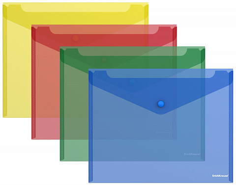 Папка-конверт на кнопке пластиковая ErichKrause Glossy Classic, A4, полупрозрачный, ассорти (в пакете по 12 шт.)