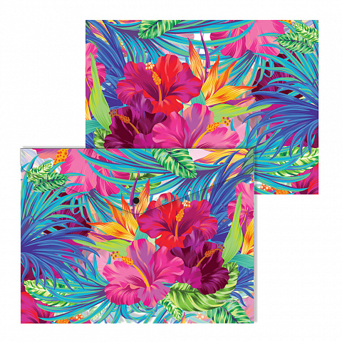 Папка-конверт на кнопке пластиковая ErichKrause® Flowers, полупрозрачная, A4 (в пакете по 12 шт.)