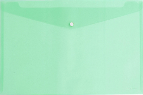 Папка-конверт на кнопке формата А4 из высококачественного полупрозрачного пластика с текстурой поверхности "зеркало". Предназначена для хранения и транспортировки небольшого количества документов. Цвет папки – салатовый. Надежная застежка-кнопка обеспечивает… |