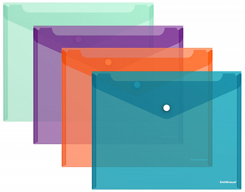 Папка-конверт на кнопке пластиковая ErichKrause® Style, полупрозрачная, A5+, ассорти (в коробке-дисплее по 24 шт.) |