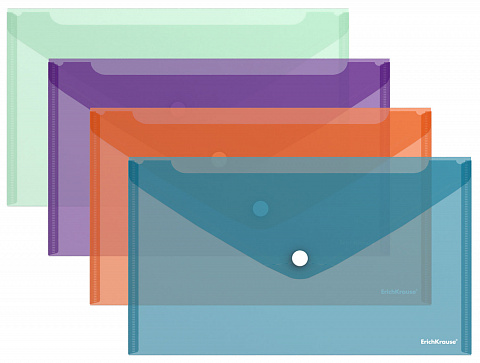 Папка-конверт на кнопке пластиковая ErichKrause® Style, полупрозрачная, C6, ассорти (в коробке-дисплее по 24 шт.)