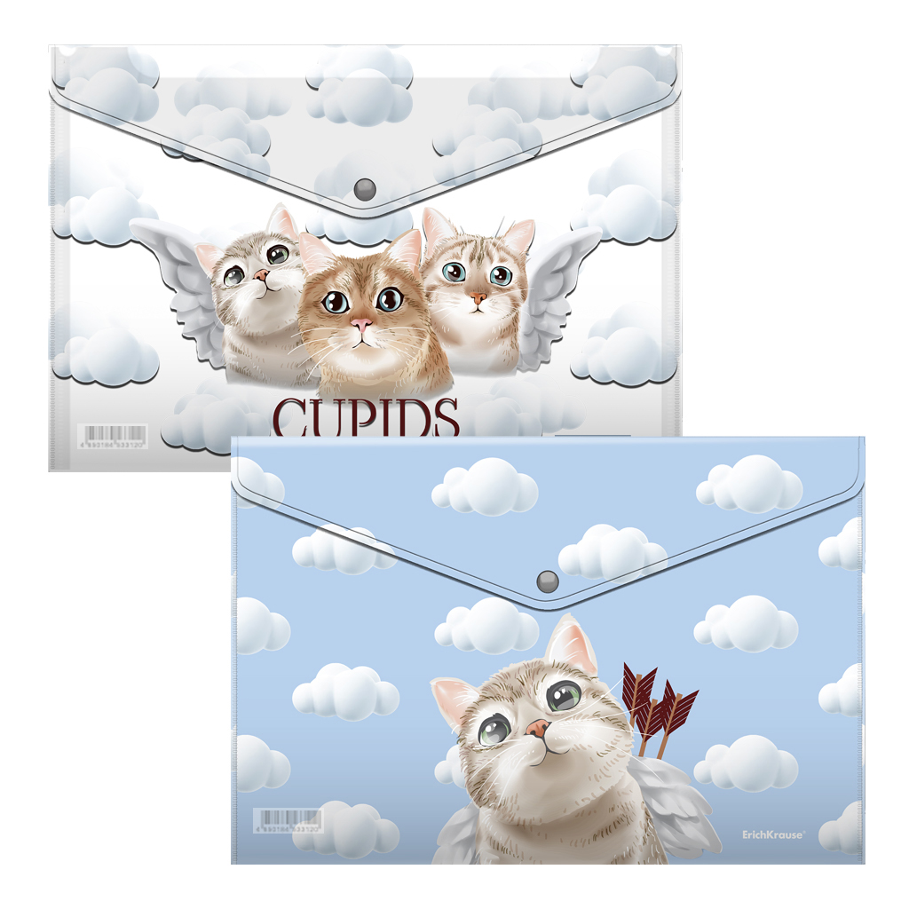 Набор из 4 папок-конвертов на кнопке пластиковых ErichKrause Cupids, A4, ассорти |