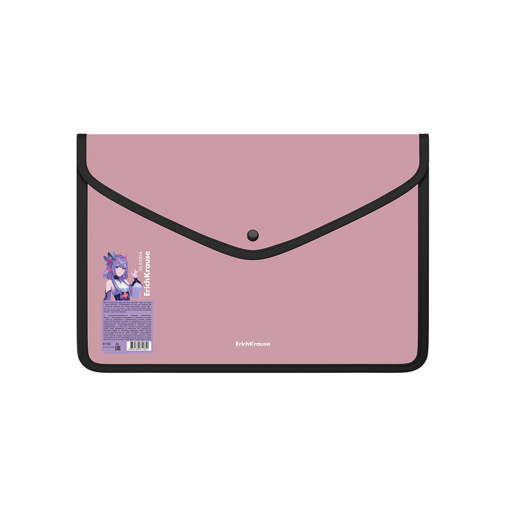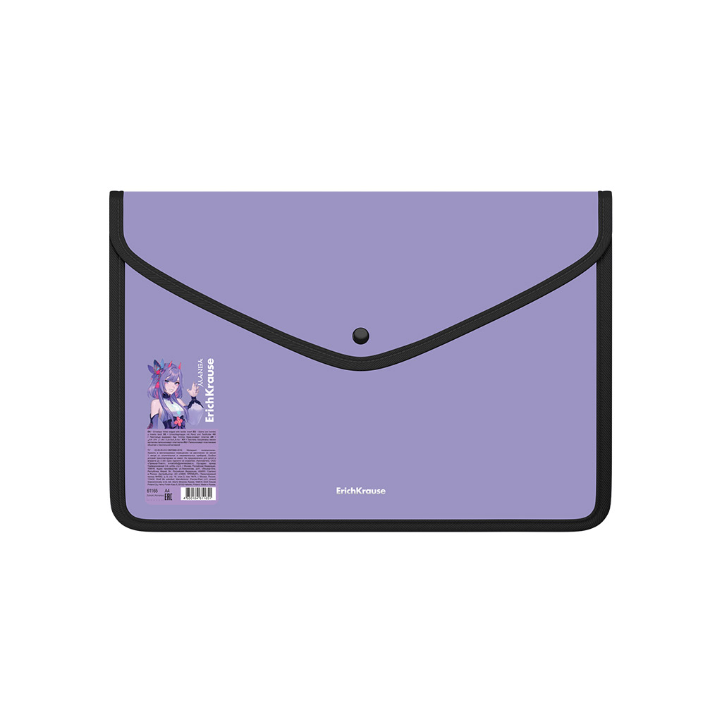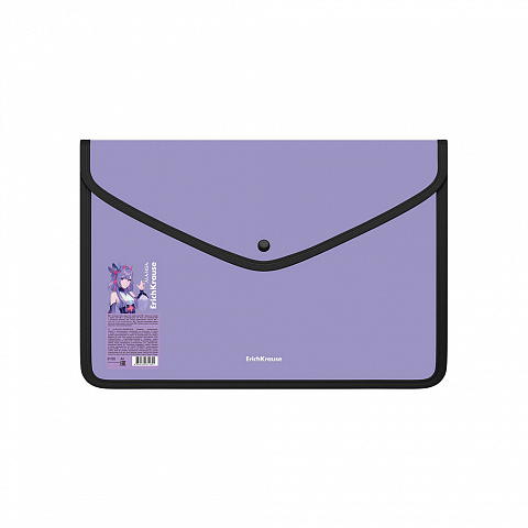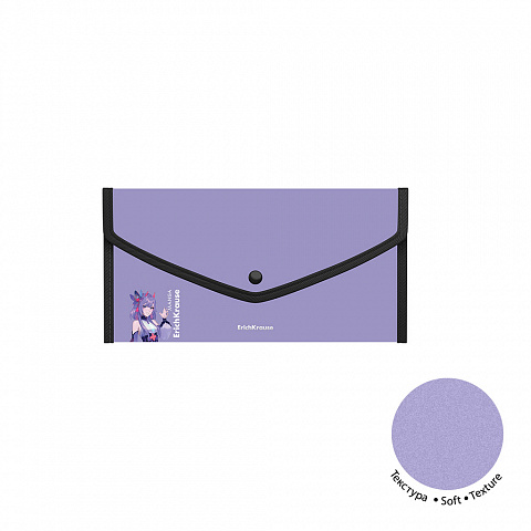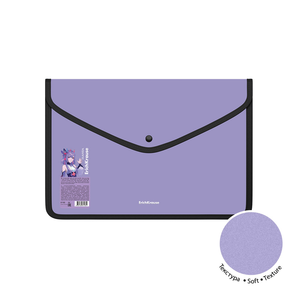 Папка-конверт на кнопке пласт. ErichKrause Soft Manga, обшитая, с текстильной вставкой, A4, непрозрачный, ассорти (в пакете по 4 шт.) |
