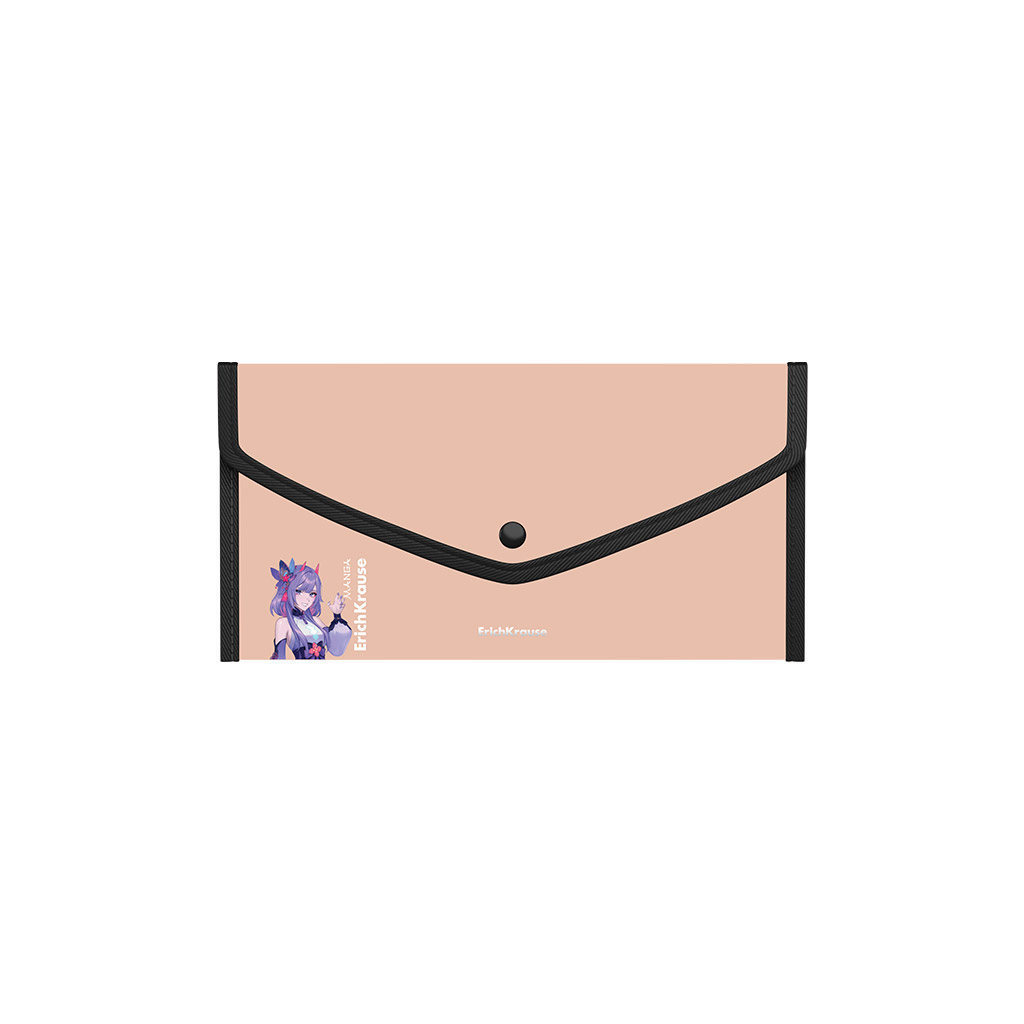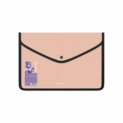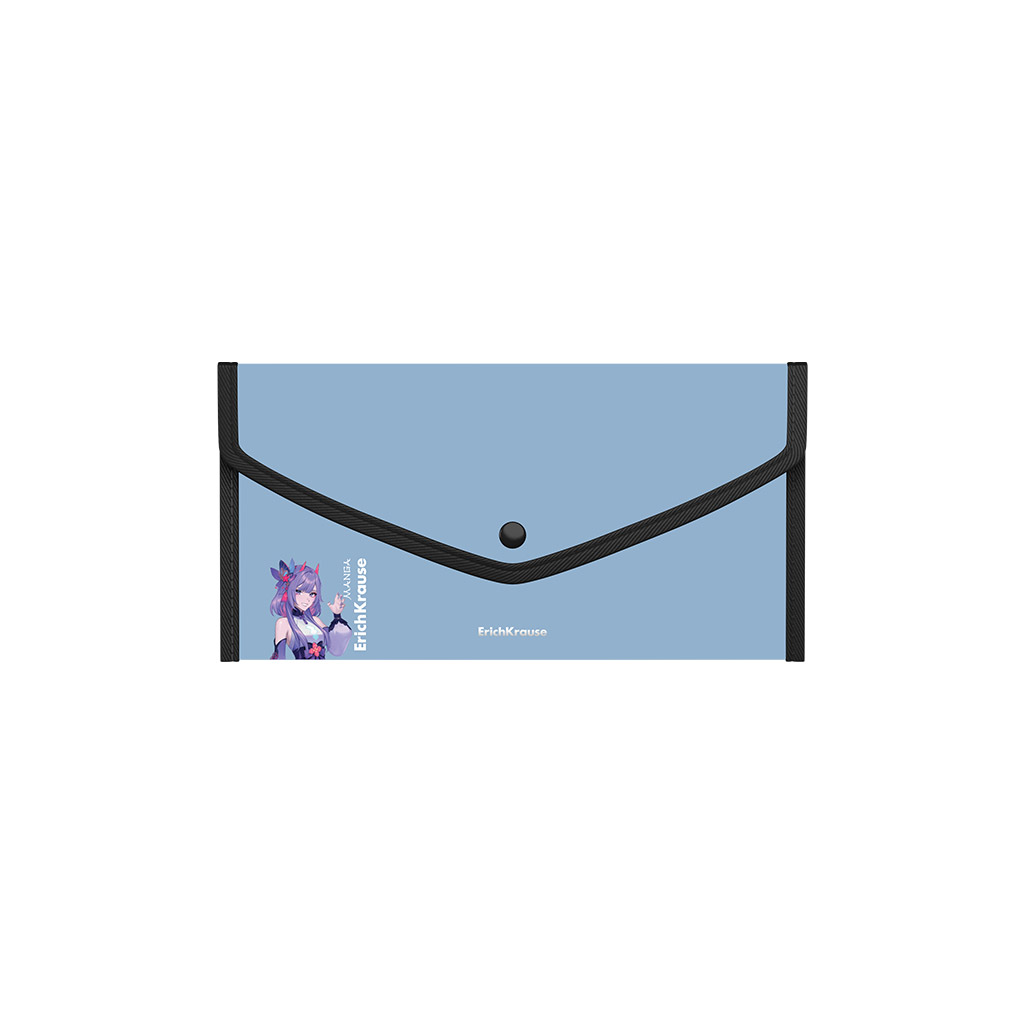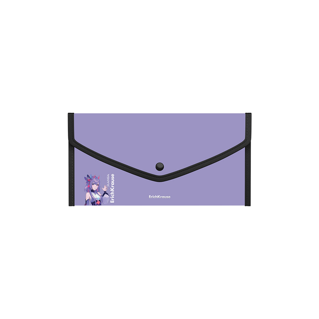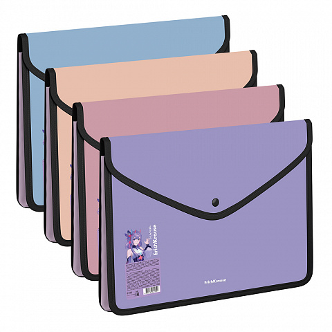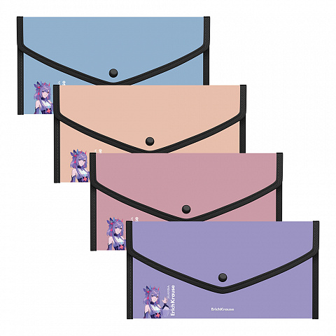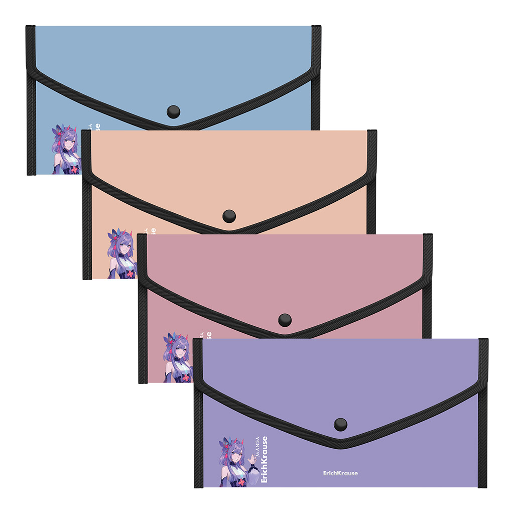 Папка-конверт на кнопке пласт. ErichKrause Soft Manga, обшитая, с текстильной вставкой, A4, непрозрачный, ассорти (в пакете по 4 шт.)