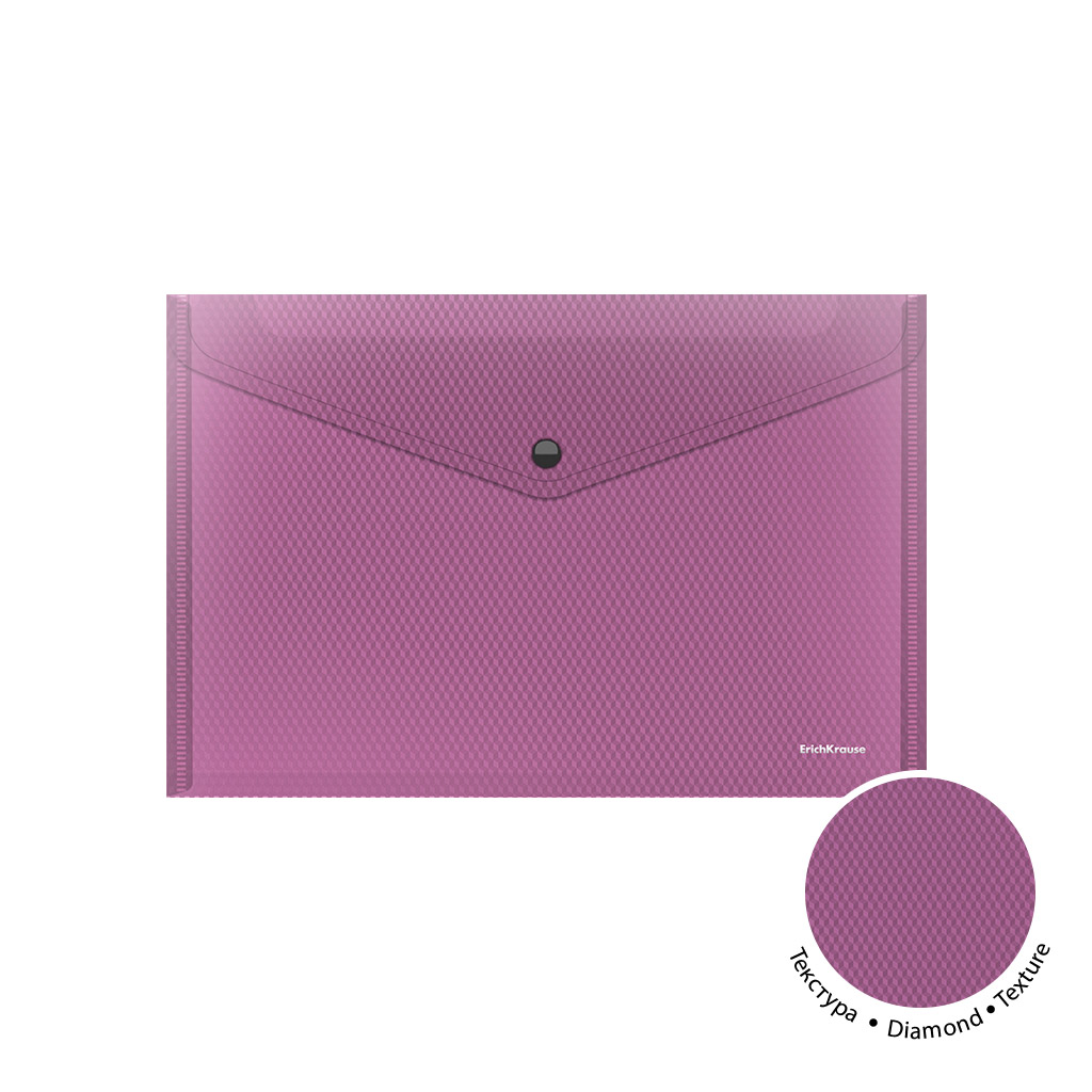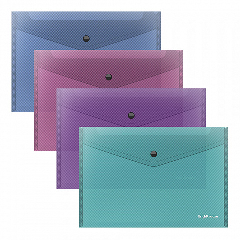Папка-конверт на кнопке пластиковая ErichKrause Diamond Vivid, A4, полупрозрачный, ассорти (в пакете по 12 шт.) |