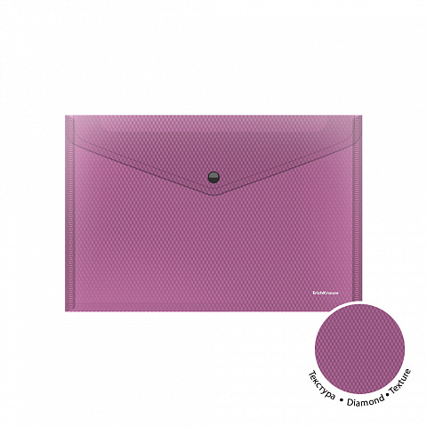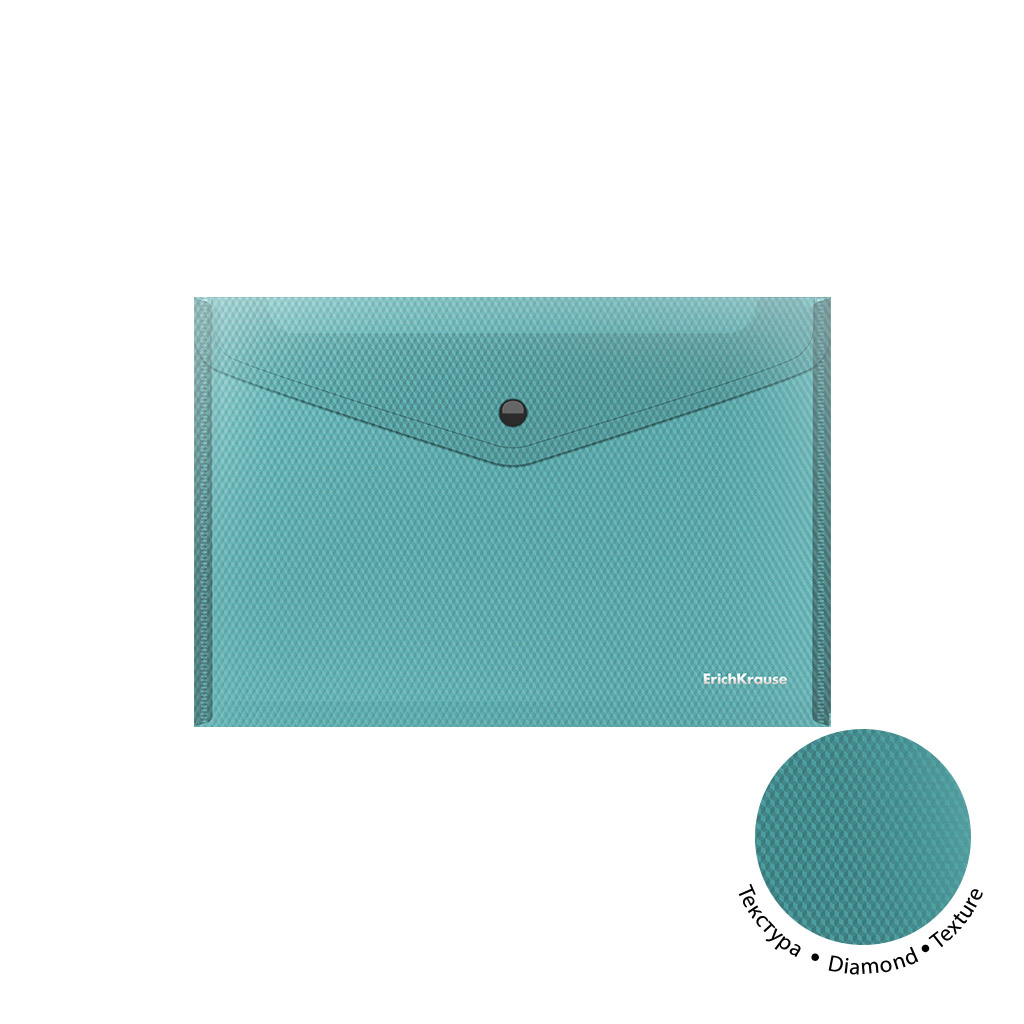 Папка-конверт на кнопке пластиковая ErichKrause Diamond Vivid, A4, полупрозрачный, ассорти (в пакете по 12 шт.)
