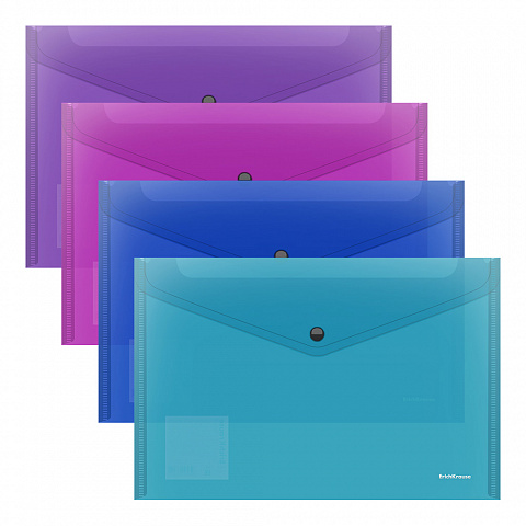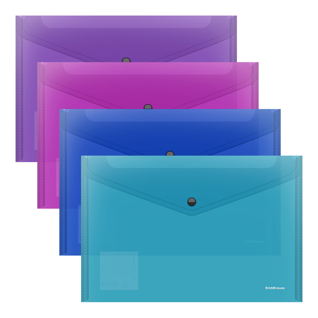 Папка-конверт на кнопке пластиковая ErichKrause Fizzy Vivid, A4, полупрозрачный, ассорти (в пакете по 24 шт.)
