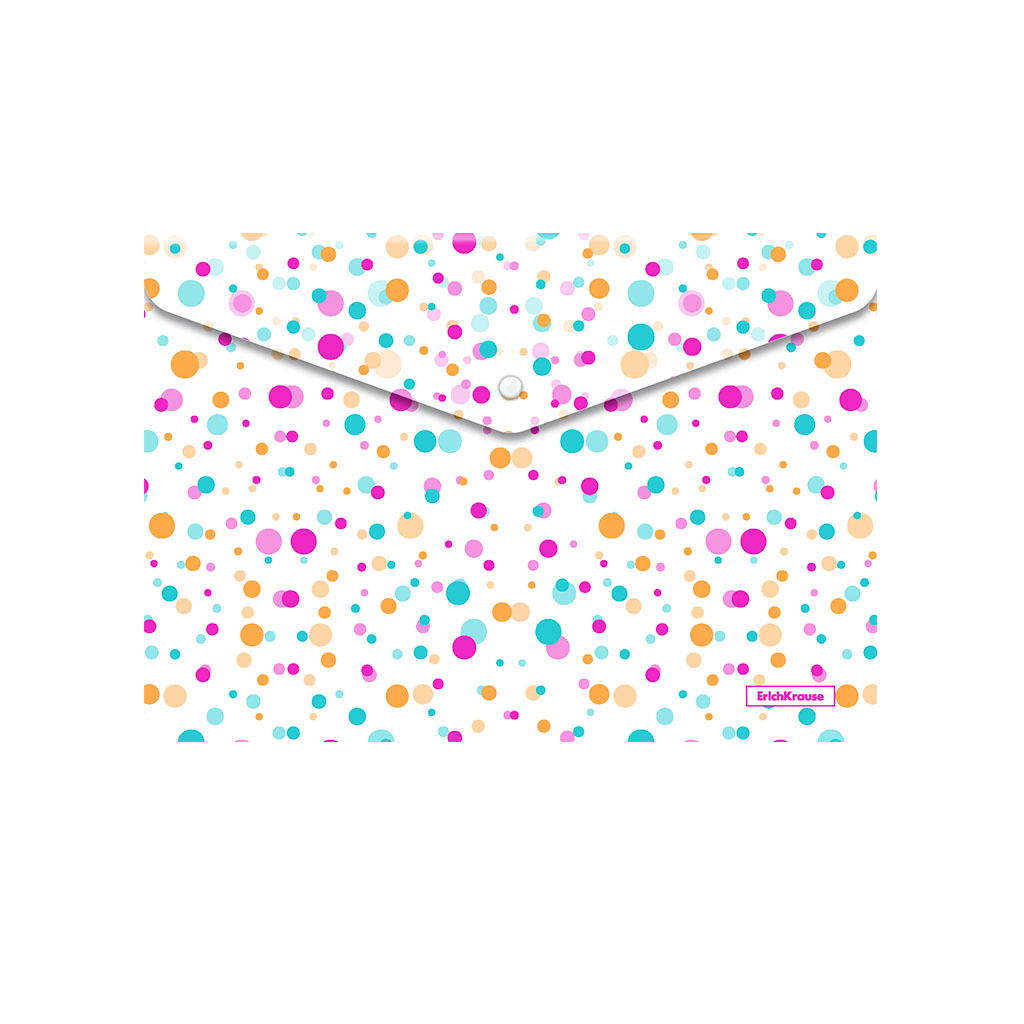 Папка-конверт на кнопке пластиковая ErichKrause® Dots, A4 (в пакете по 12 шт.)
