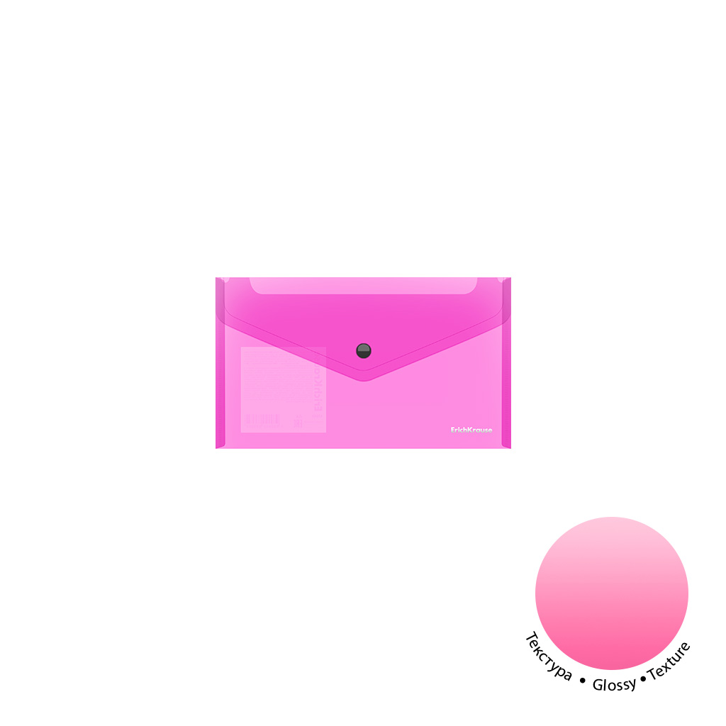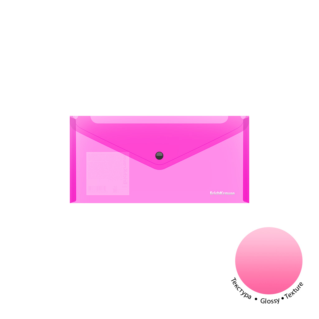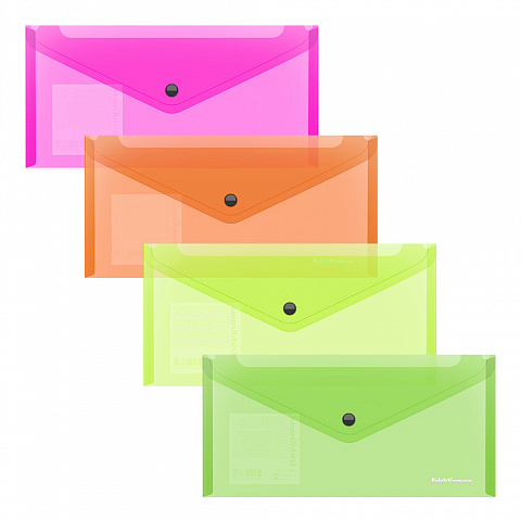 Папка-конверт на кнопке пластиковая ErichKrause Glossy Neon, Travel, полупрозрачный, ассорти (в пакете по 12 шт.)