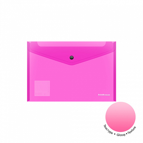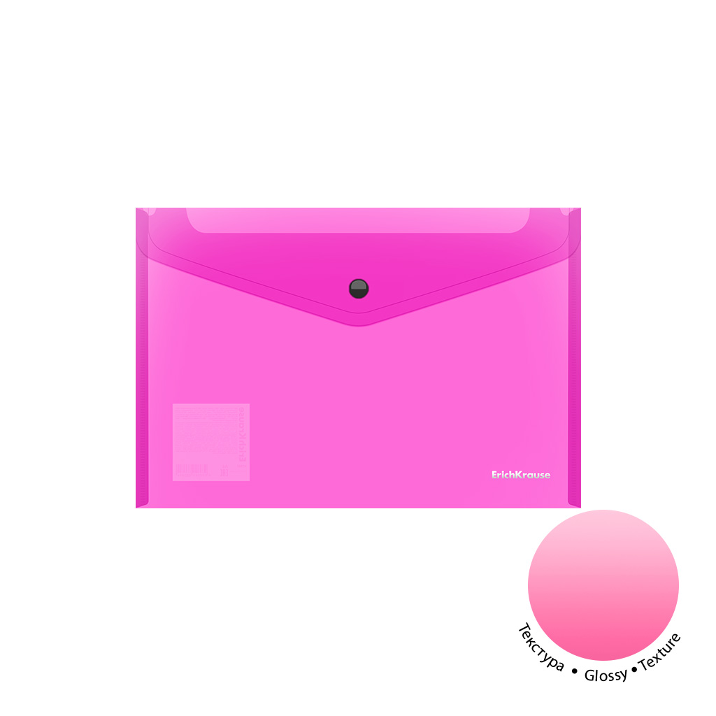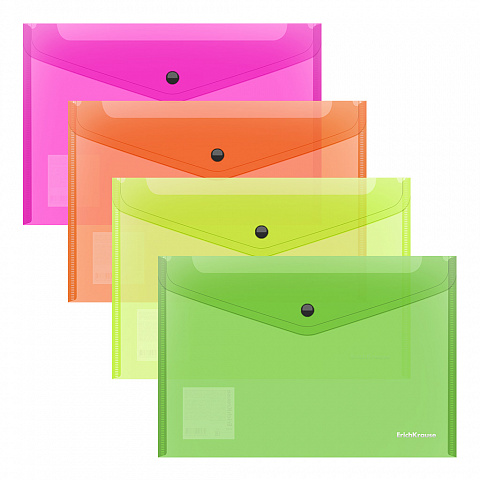 Папка-конверт на кнопке пластиковая ErichKrause Glossy Neon, A4, полупрозрачный, ассорти (в пакете по 24 шт.)