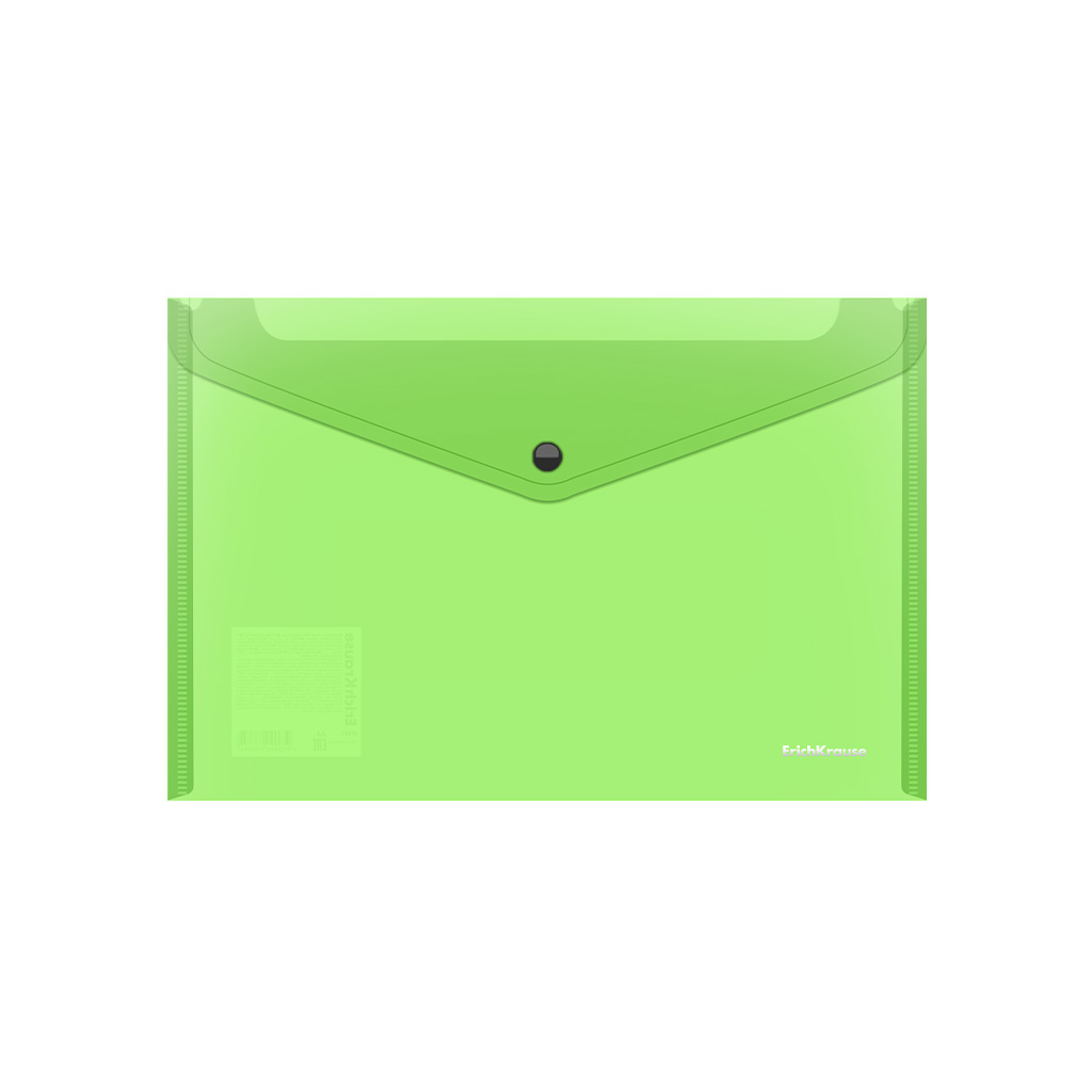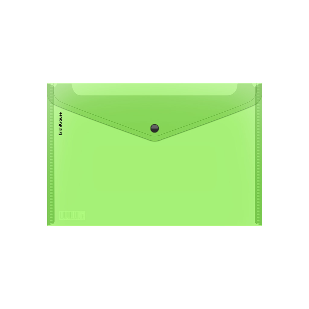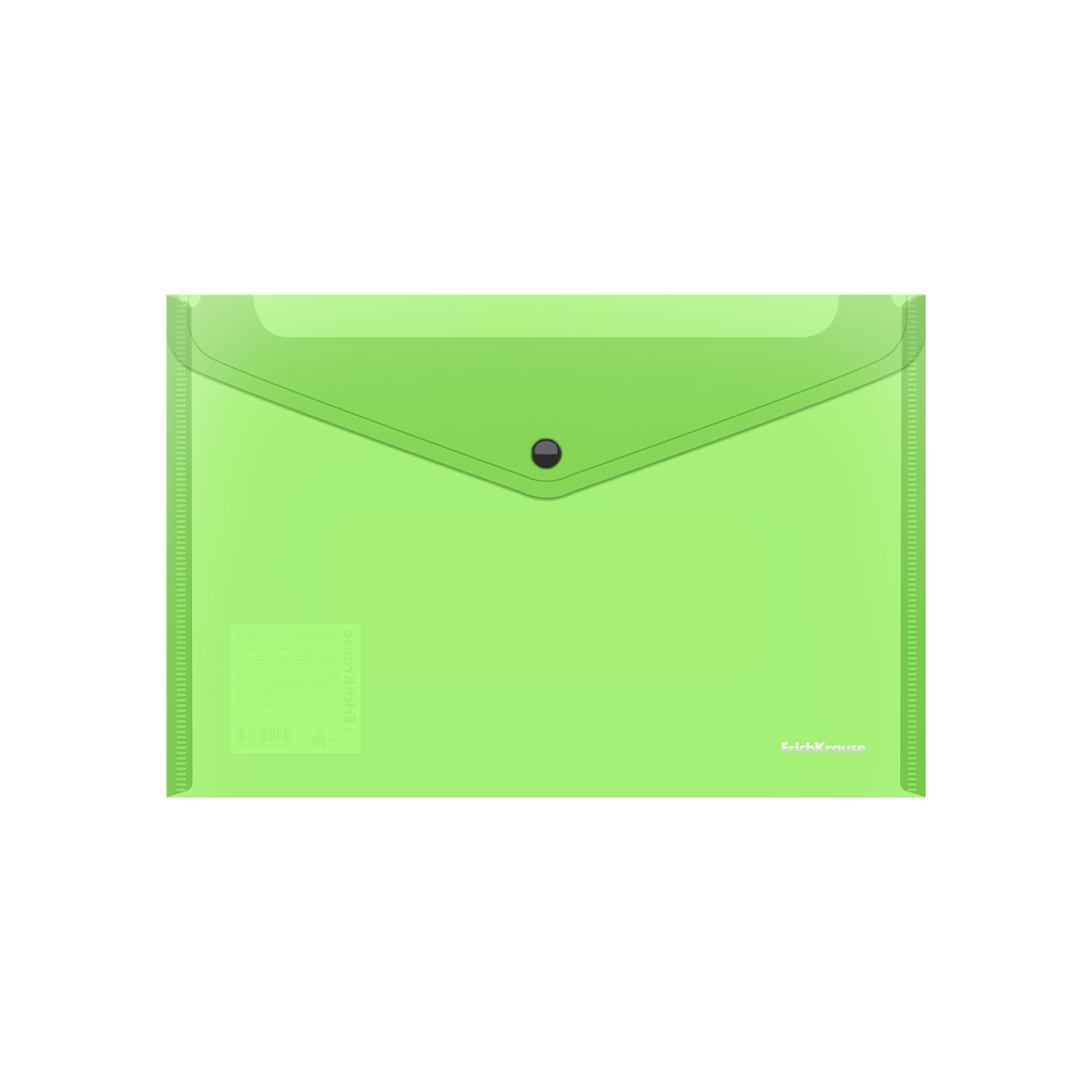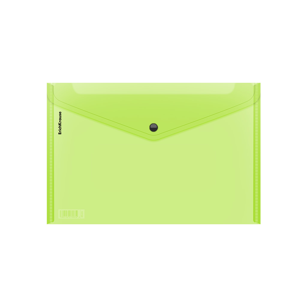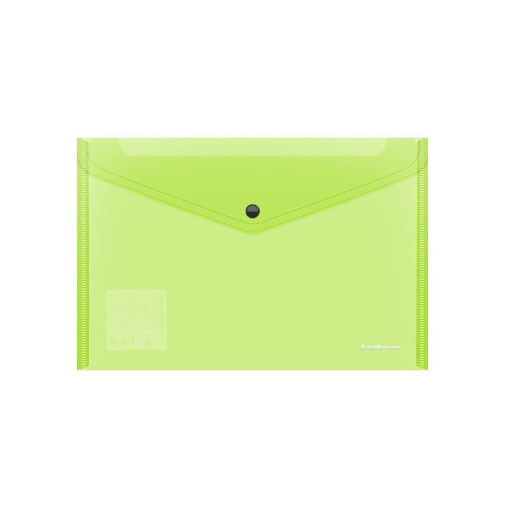 Папка-конверт на кнопке пластиковая ErichKrause Fizzy Neon, A4, полупрозрачный, ассорти (в пакете по 12 шт.)
