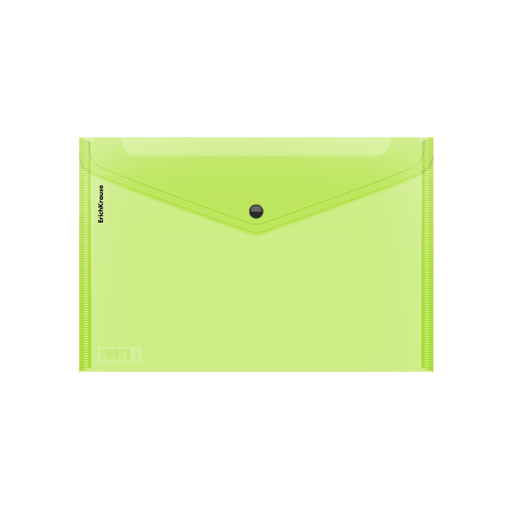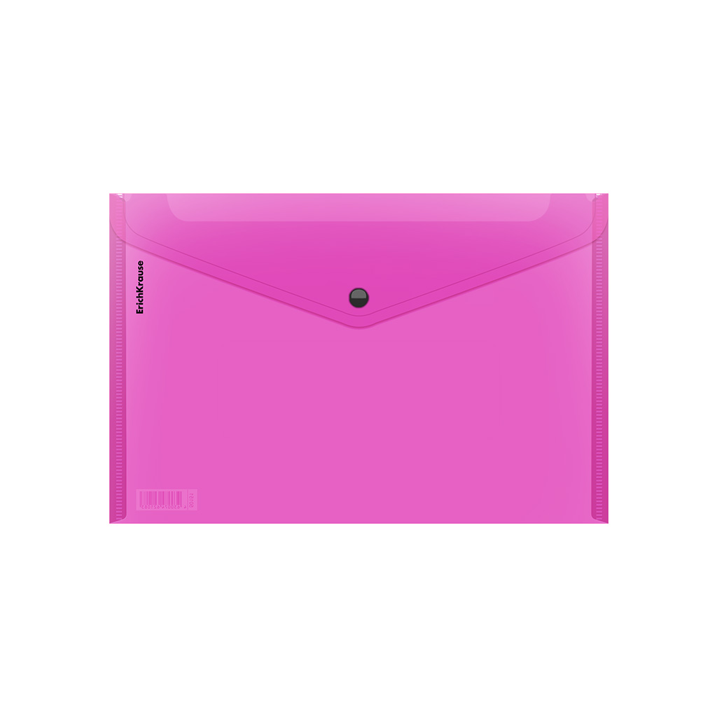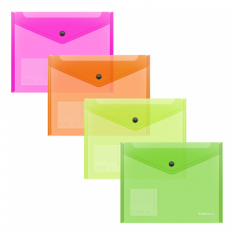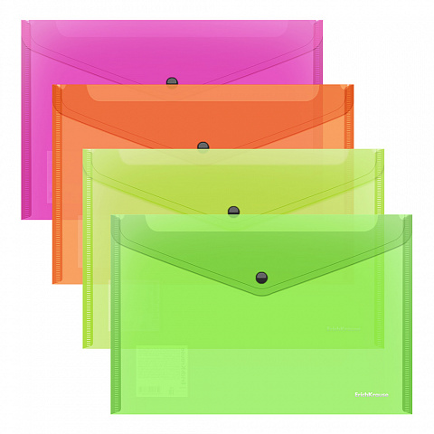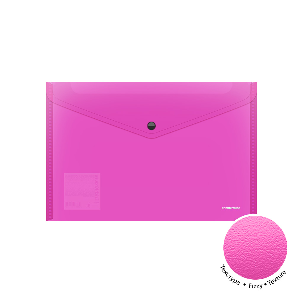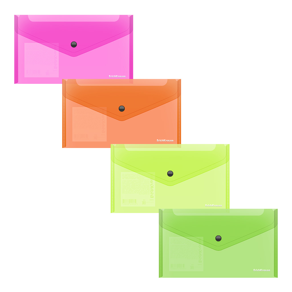 Папка-конверт на кнопке пластиковая ErichKrause Fizzy Neon, A4, полупрозрачный, ассорти (в пакете по 24 шт.)