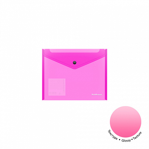 Папка-конверт на кнопке пластиковая ErichKrause Glossy Neon, A5+, полупрозрачный, ассорти (в пакете по 12 шт.)
