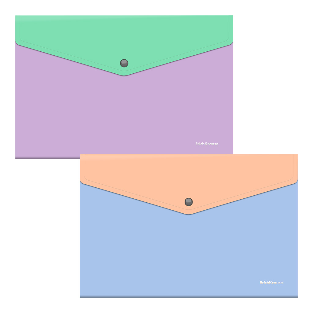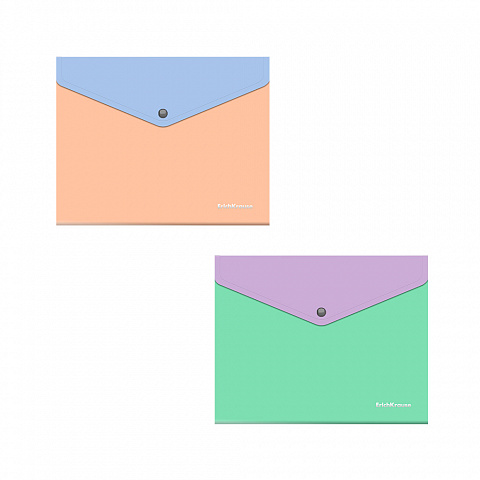 Папка-конверт на кнопке пластиковая ErichKrause Matt Pastel Bloom, A4, непрозрачный, ассорти (в пакете по 24 шт.)