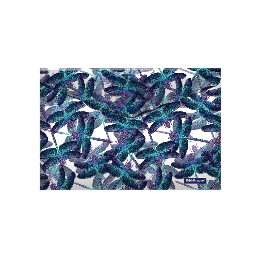 Папка-конверт на кнопке пластиковая ErichKrause® Neon Dragonflies, A4 (в пакете по 12 шт.)