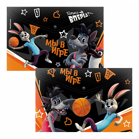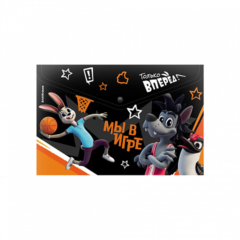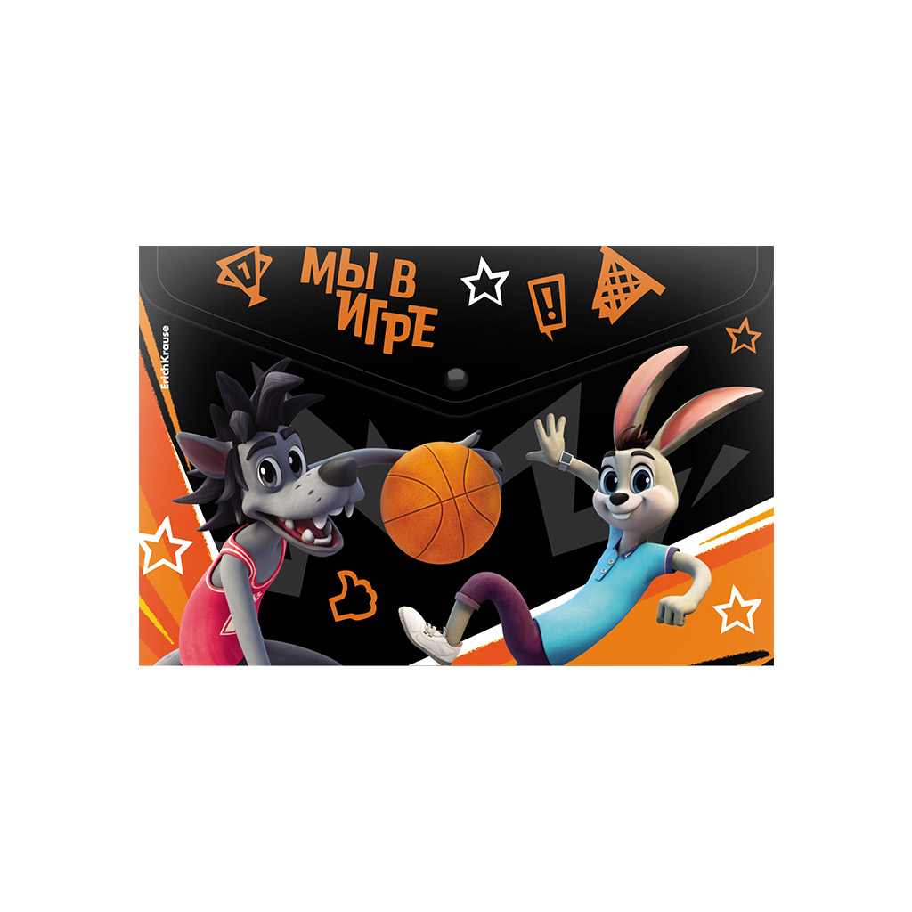 Папка-конверт на кнопке пластиковая ErichKrause Ну, Погоди! Каникулы, A4, ассорти (в пакете по 12 шт.)