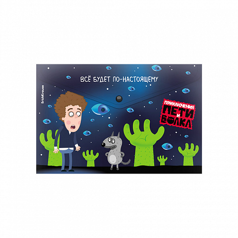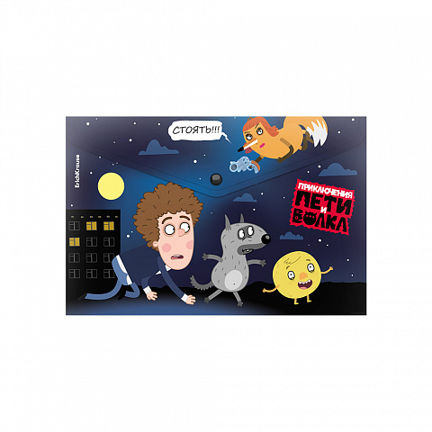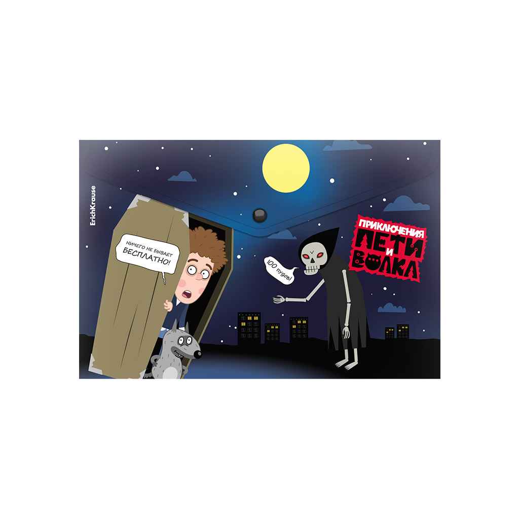 Папка-конверт на кнопке пластиковая ErichKrause Приключения Пети и Волка, A4, ассорти (в пакете по 12 шт.)