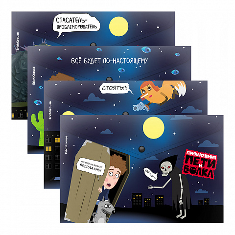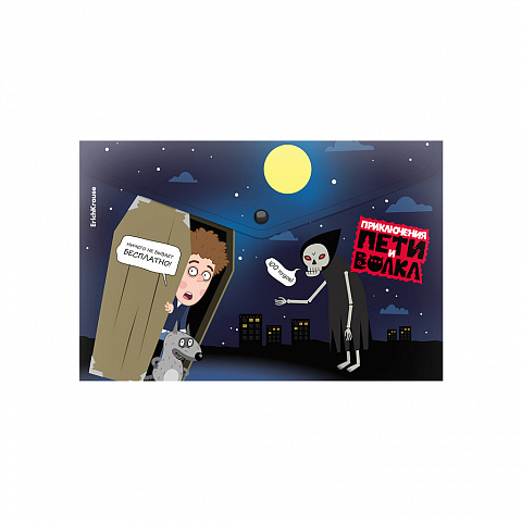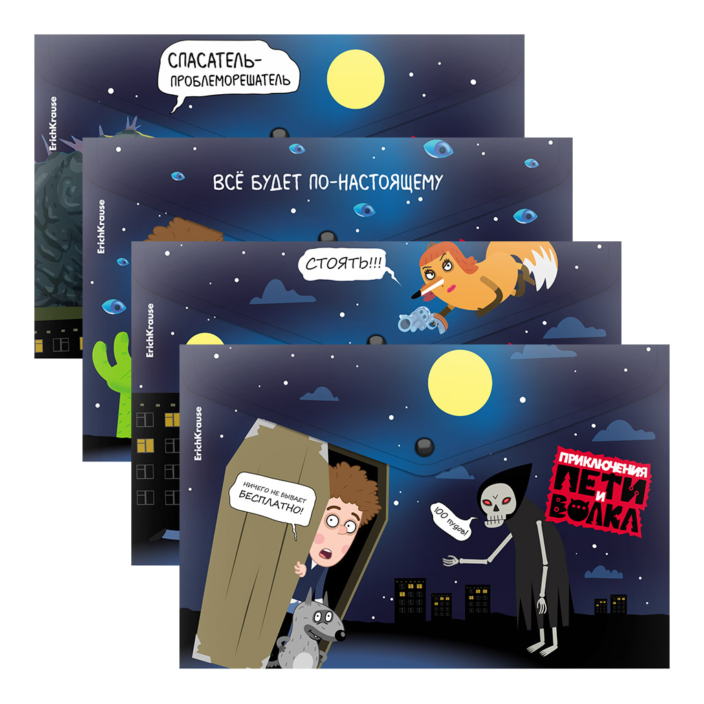 Папка-конверт на кнопке пластиковая ErichKrause Приключения Пети и Волка, A4, ассорти (в пакете по 12 шт.) |