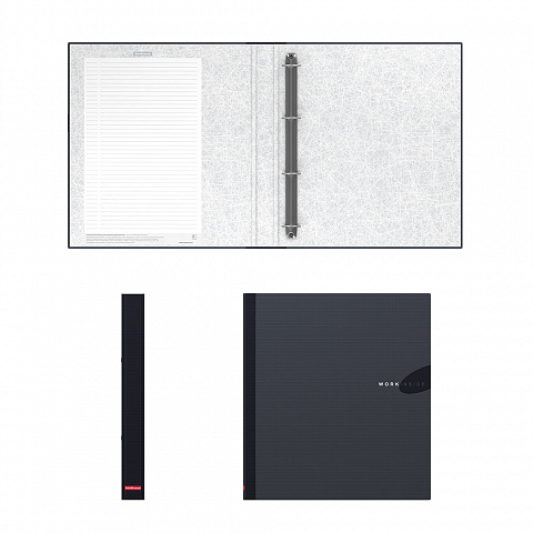 Папка-регистратор на 4 кольцах ErichKrause, Work inside, А4, 35 мм, черный |