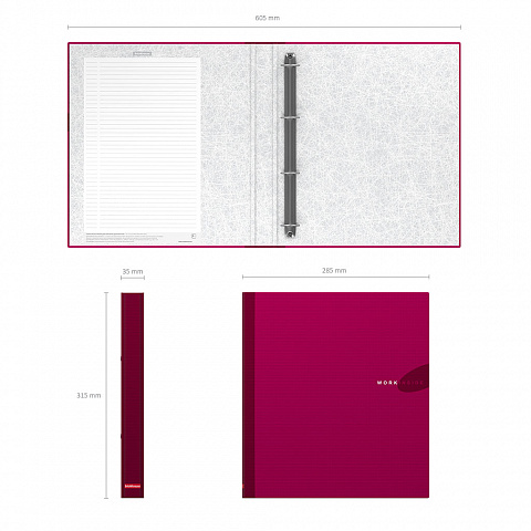Папка-регистратор на 4 кольцах ErichKrause, Work inside, А4, 35 мм, бордовый
