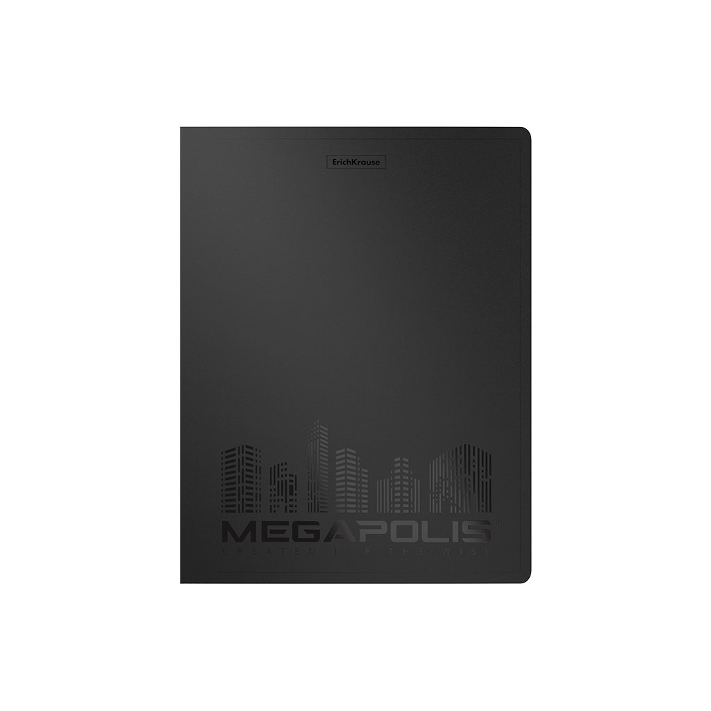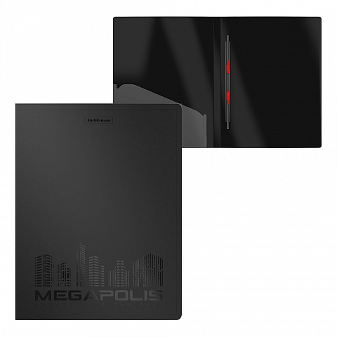 Папка-скоросшиватель пластиковая ErichKrause® MEGAPOLIS, с пружинным механизмом, A4, черный (в коробке-дисплее по 12 шт.)