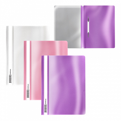 Папка-скоросшиватель формата А4 из высококачественного пластика с текстурой поверхности "зеркало". Предназначена для быстрого сшивания, хранения и просмотра документов. Цвет папки – ассорти: белый, розовый, фиолетовый. Механизм - механический скоросшиватель… |