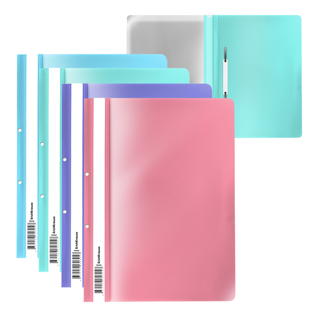 Папка-скоросшиватель с перфорацией пластиковая ErichKrause Diagonal Pastel, A4, ассорти (в пакете по 20 шт.)