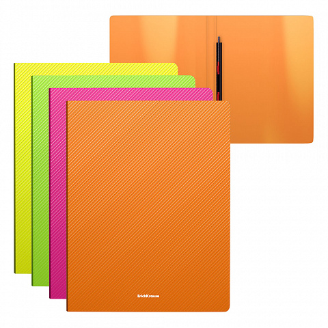 Папка-скоросшиватель пластиковая с пружинным механизмом ErichKrause® Diagonal Neon, A4, ассорти (в пакете по 4 шт.)
