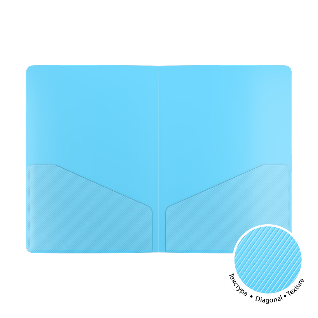 Папка-уголок с 2 карманами формата А4 из высококачественного полупрозрачного пластика с текстурой поверхности "диагональ", на которой не видно отпечатков пальцев и мелких царапин. Предназначена для хранения и транспортировки небольшого количества документов. Папка вмещает до 40 бумажных листов. Цвет папки - ассорти: голубой, мятный, розовый, фиолетовый. Размер - 220х310мм, толщина - 0.18мм. Код и баркод на каждой единице товара. |