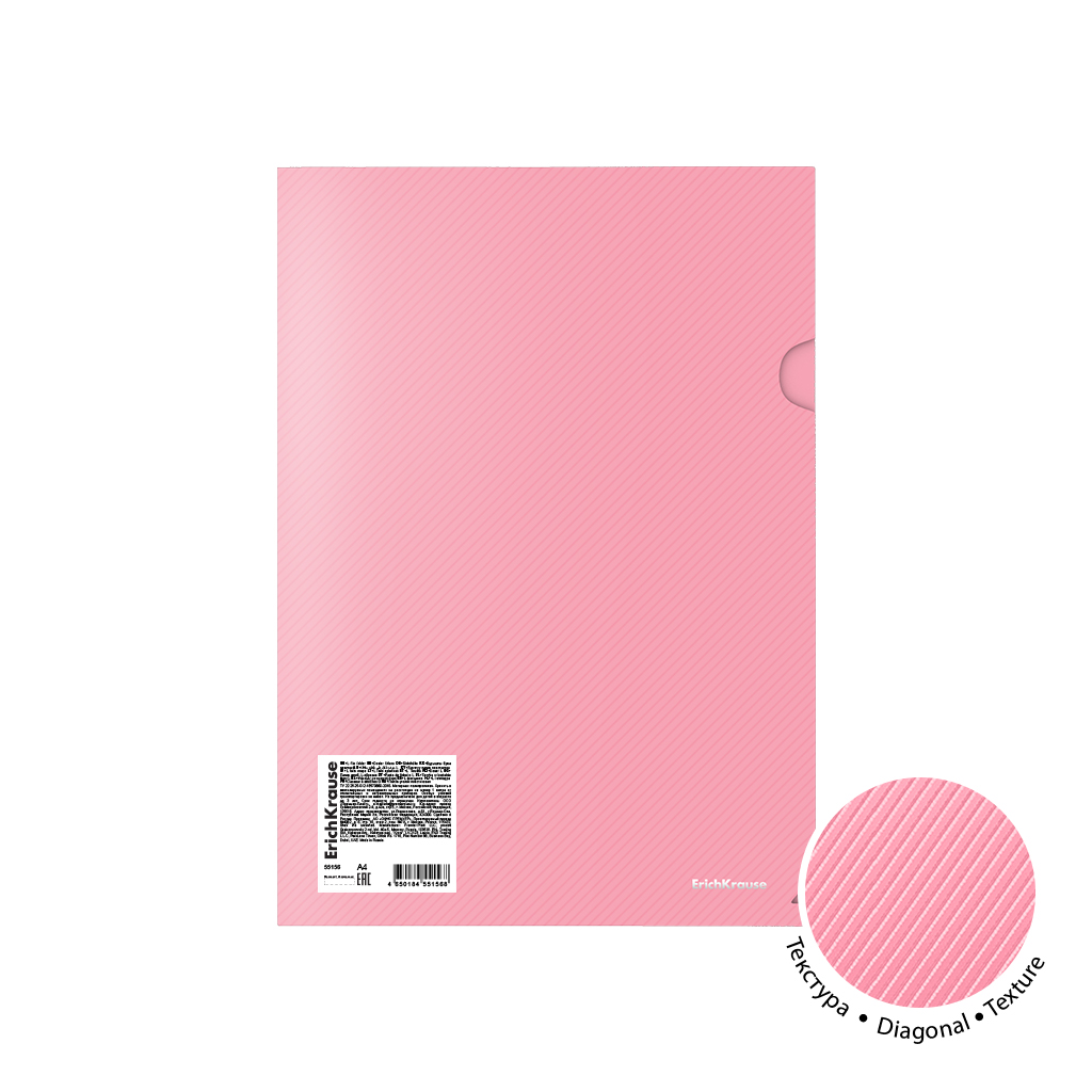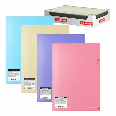 Папка-уголок пластиковая ErichKrause® Diagonal Pastel, A4, непрозрачный, ассорти (в коробке-дисплее по 120 шт.)
