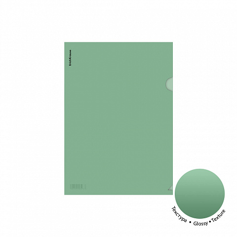 Папка-уголок пластиковая ErichKrause Glossy Classic, A4, полупрозрачный, зеленый (в пакете по 12 шт.)
