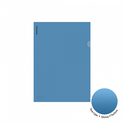Папка-уголок пластиковая ErichKrause Glossy Classic, A4, полупрозрачный, синий (в пакете по 12 шт.) |