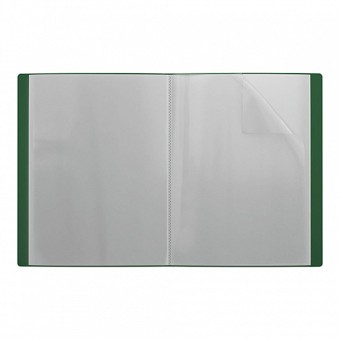 Папка файловая формата А4 из высококачественного пластика с текстурой поверхности "песок", на которой не видно отпечатков пальцев и мелких царапин. Предназначена для хранения и просмотра документов. Папка содержит 40 прозрачных листов-карманов, надежно скрепленных сваркой. Цвет папки – зеленый. Папка вмещает до 100 бумажных листов. Размер - 238х310х24мм, толщина - 0.4мм. |