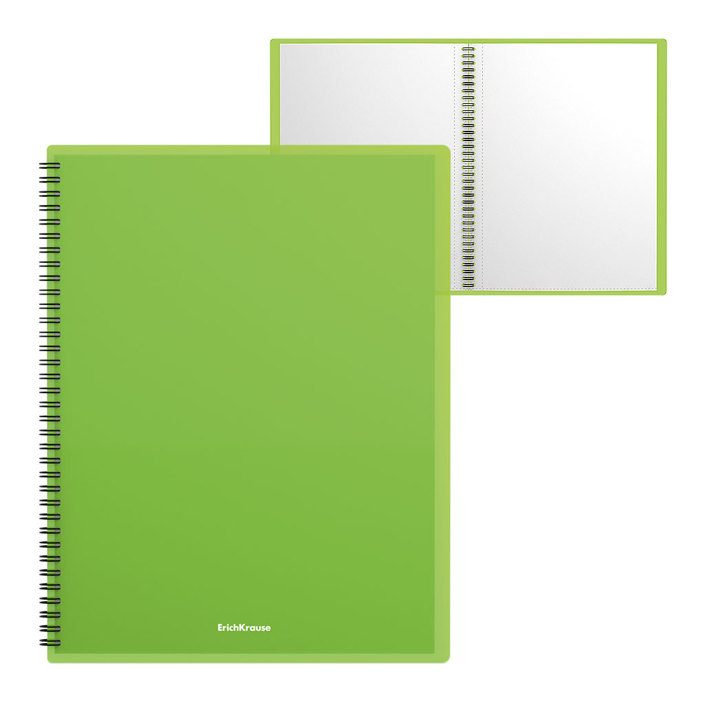 Папка файловая пластиковая ErichKrause® Neon, с 20 прозрачными карманами, на спирали, A4, зеленый (в пакете по 1 шт.) |