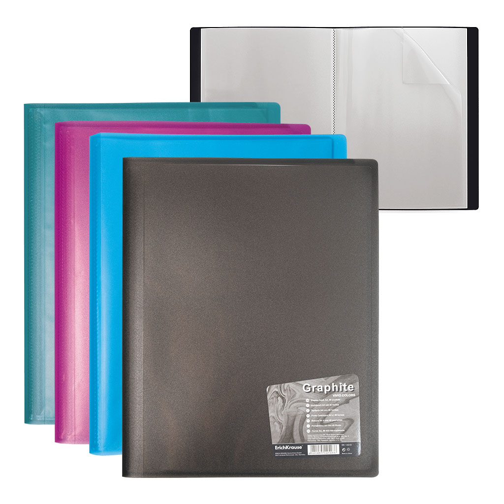 | Полное наименование товара: | Папка файловая пластиковая ErichKrause® Vivid colors, с 40 прозрачными карманами, A4, ассорти (в пакете по 3 шт.) |