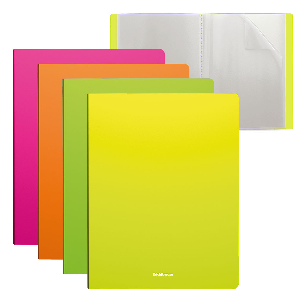 Папка файловая пластиковая ErichKrause Matt Neon, c 40 карманами, A4, ассорти (в пакете по 4 шт.)