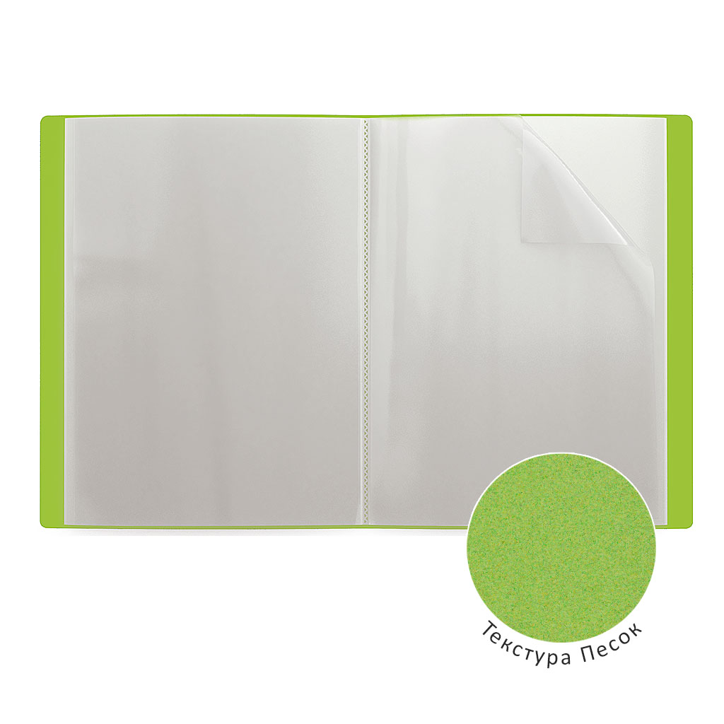 Папка файловая формата А4 из высококачественного пластика с текстурой поверхности "песок", на которой не видно отпечатков пальцев и мелких царапин. Предназначена для хранения и просмотра документов. Папка содержит 20 прозрачных листов-карманов, надежно скрепленных сваркой. Цвет папки – зеленый. Размер - 231х310х17мм, толщина - 0.5мм. |