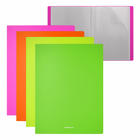 Папка файловая пластиковая ErichKrause Matt Neon, c 40 карманами, A4, ассорти (в пакете по 4 шт.)