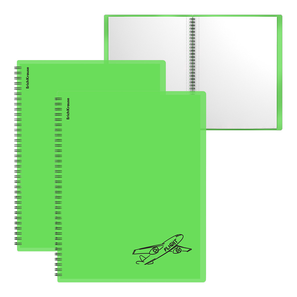 Папка файловая пластиковая на спирали ErichKrause Neon Transport, с 30 прозрачными карманами, A4, зеленый, ассорти (в пакете по 4 шт.)