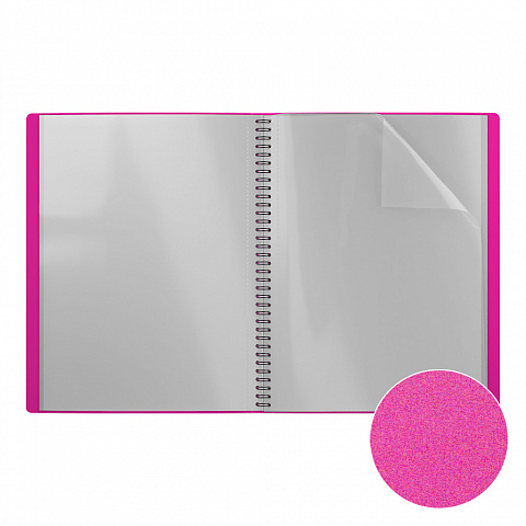 Папка файловая формата А4 из высококачественного пластика с текстурой поверхности "песок", на которой не видно отпечатков пальцев и мелких царапин. Предназначена для хранения и просмотра документов. Цвет папки - ассорти: зеленый, оранжевый, розовый, желтый. Папка содержит 20 прозрачных листов-карманов, надежно скрепленных двойной евроспиралью. Размер - 250х315х10мм, толщина - 0.6мм. Код и баркод на каждой единице товара. |