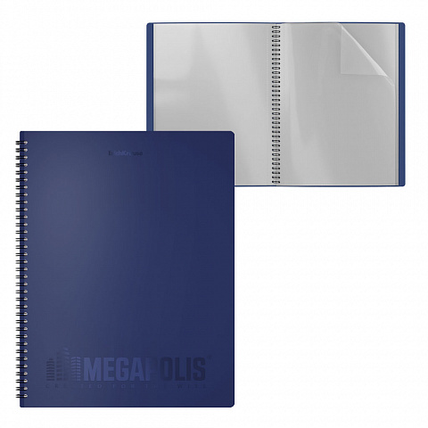 Папка файловая пластиковая на спирали ErichKrause MEGAPOLIS, c 20 карманами, A4, синий (в пакете по 4 шт.)