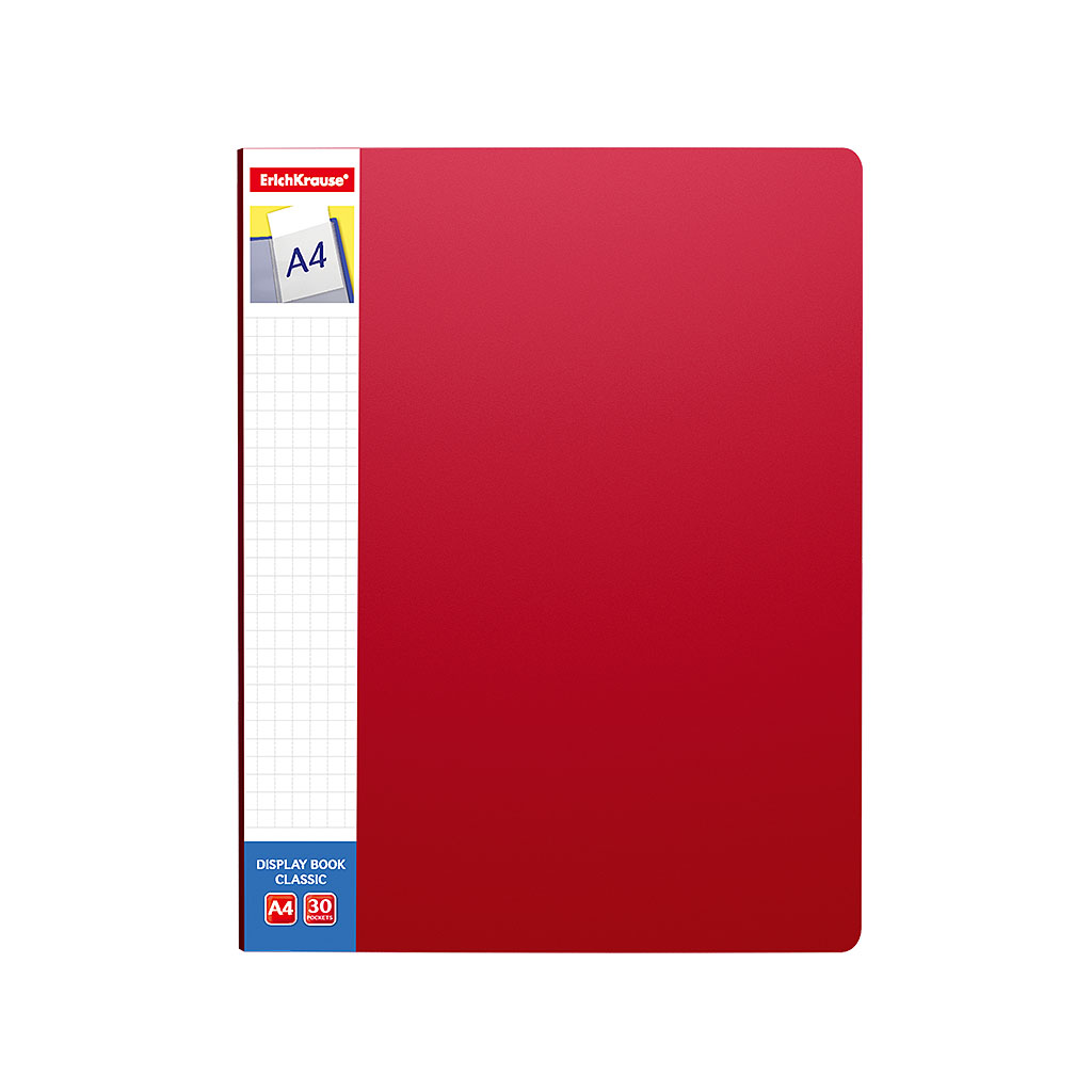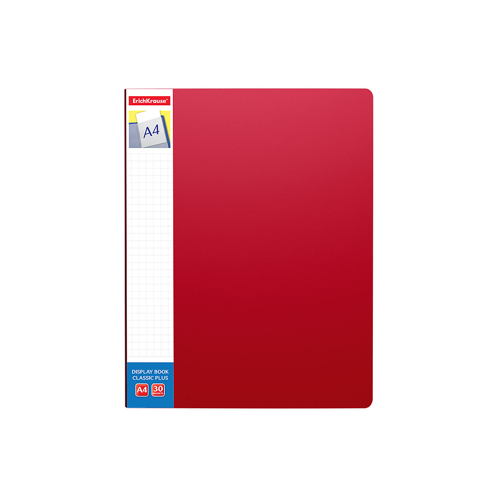 Папка файловая пластиковая ErichKrause® Classic Plus, c 30 карманами и карманом на корешке, A4, красный (в пакете по 4 шт.)