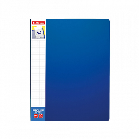 Папка файловая пластиковая ErichKrause® Classic Plus, c 30 карманами и карманом на корешке, A4, синий (в пакете по 4 шт.)