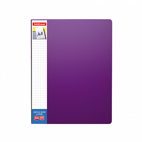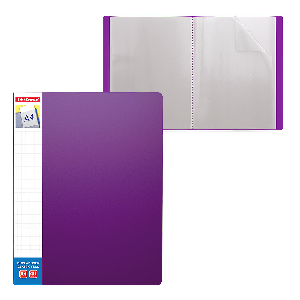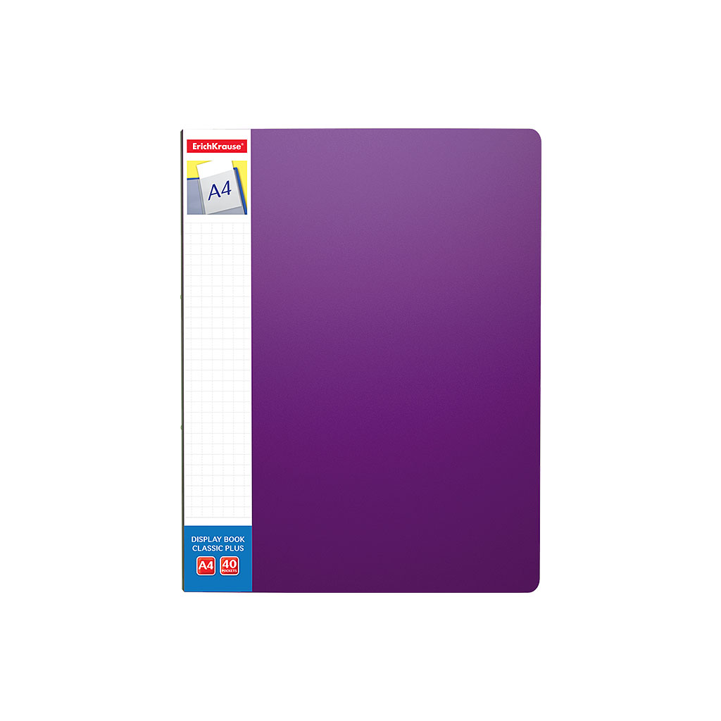 Папка файловая пластиковая ErichKrause® Classic Plus, c 40 карманами и карманом на корешке, A4. фиолетовый (в пакете по 4 шт.) |