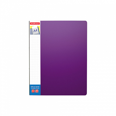 Папка файловая пластиковая ErichKrause® Classic Plus, c 40 карманами и карманом на корешке, A4. фиолетовый (в пакете по 4 шт.)