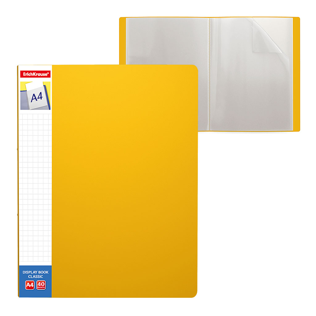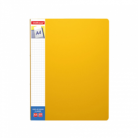 Папка файловая пластиковая ErichKrause® Classic Plus, c 40 карманами и карманом на корешке, A4, желтый (в пакете по 4 шт.)