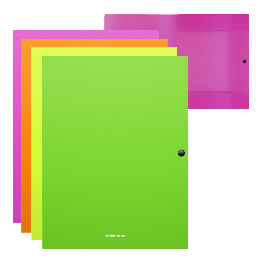 Папка на кнопке пластиковая ErichKrause Matt Neon, с 3 клапанами, 8мм, A4, ассорти (в пакете по 4 шт.)