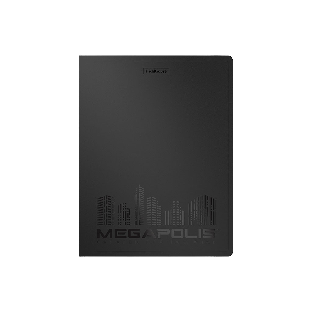 Папка на 4 кольцах пластиковая ErichKrause® Megapolis, 24 мм, А4, черный (в коробке-дисплее по 12 шт.) |