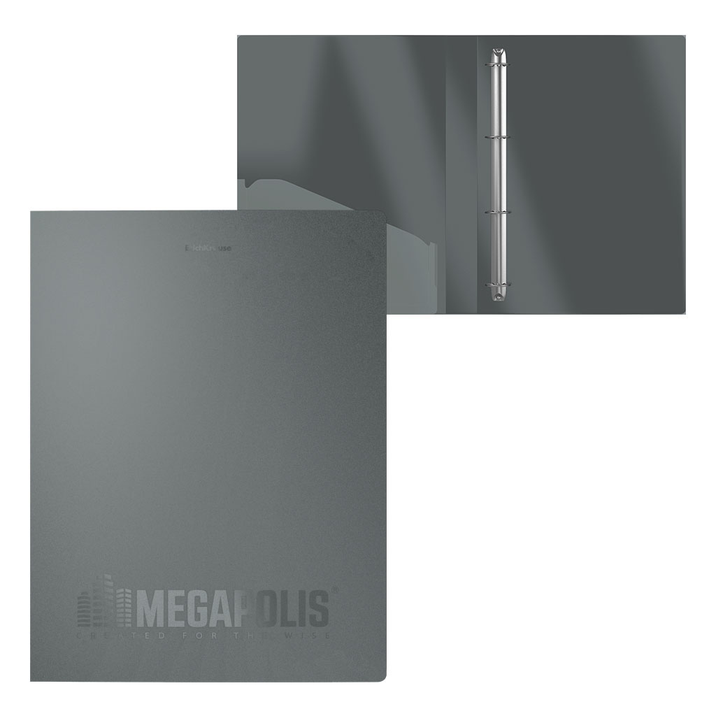 Папка на 4 кольцах пластиковая ErichKrause MEGAPOLIS®, 24 мм, A4, серый (в пакете по 4 шт.)
